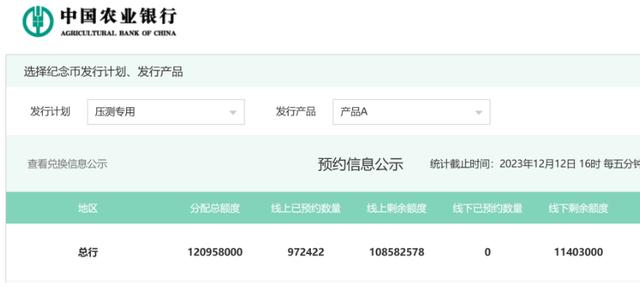 这套纪念币会在1月3日进行面值预约!由于是币钞同一日开约,和京剧币相比,预约会有不少变化! 目前各大行的入口,也陆续开始了更新,其中农行就已经进行了压力测试,为纪念钞和纪念币的同日预约做好准备。 只是,随着龙年币钞的临近,京剧币近期的热度也有所降低,它跌了!与此同时,关于京剧币的余量预约,也有不少争议出现。 具体情况如何,一起来看看。 入口更新,或分批预约在公告发行之前,农行的预约页面,就进行了压力测试。