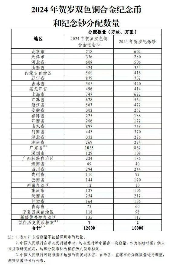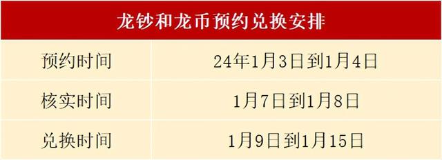而龙年币钞,则要等到1月3日才会开始预约,每人每种都能预约20枚。 具体安排如下。