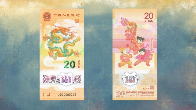 然后是20元龙钞,它不仅只发行1亿张,还是塑料钞,有透明视窗设计,上面还有一个显眼的福字,和金银币能形成配套,特别好看。 同时,这张纪念钞除了贴近生肖系列的设计外,另一面主景是儿童舞龙灯的图案,年味十足,贴合新年的礼品需求。 更为关键的是,热度更高的龙钞,只发行1亿张,比龙币少的同时,每人的预约数量依然是20张。