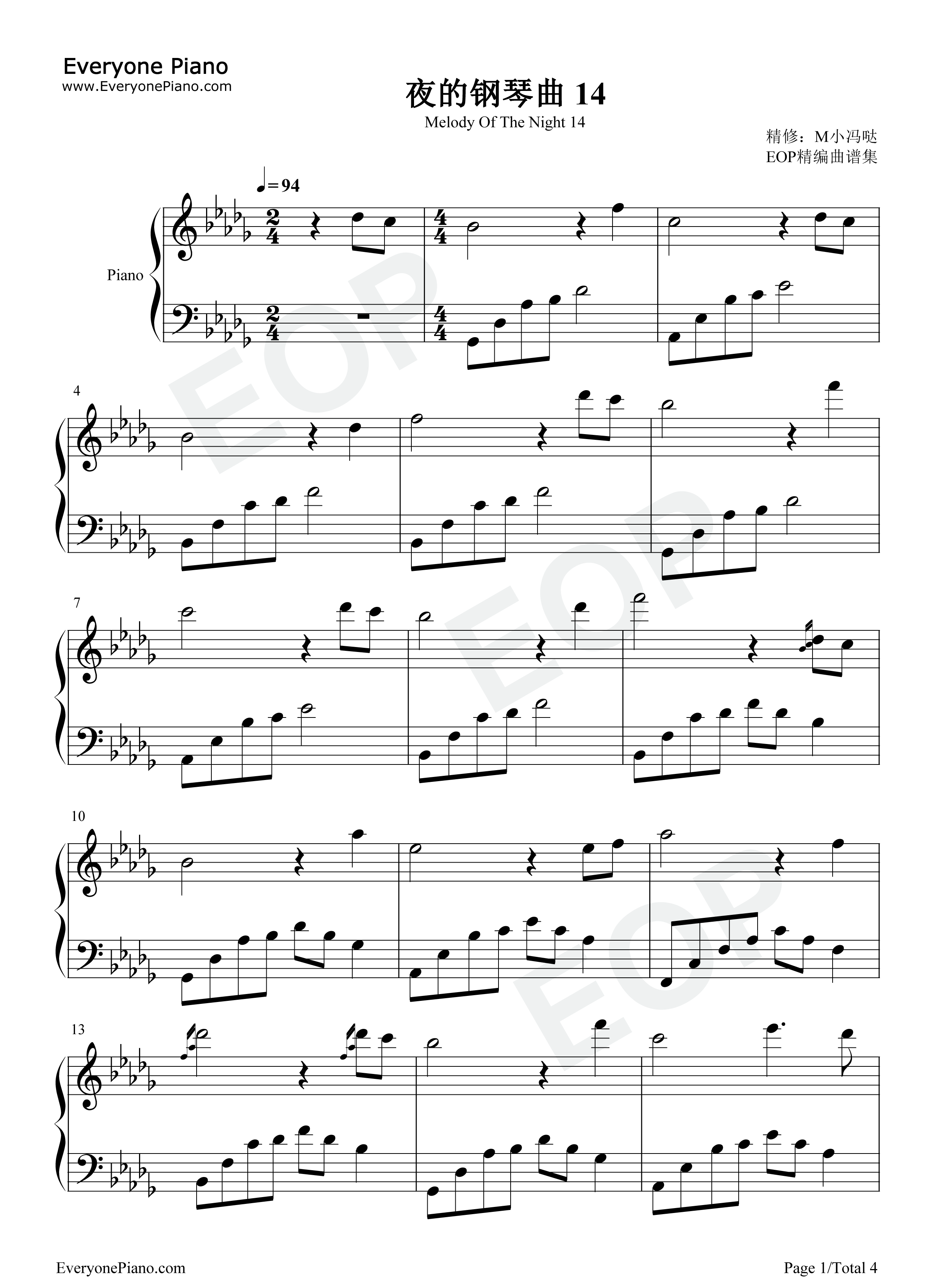 当前位置:首页>娱乐>夜的钢琴曲 14钢琴谱-石进
