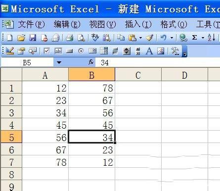3、除了计算单个单元格数据我绝对值,我们还可以计算多个单元格数据之差的绝对值。例如我们要计算下图中两列数据之差的绝对值;