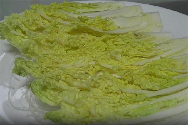 3.这是泡好的粉丝,然后把粉丝分散摆在盘底,再把娃娃菜摆在粉丝上。