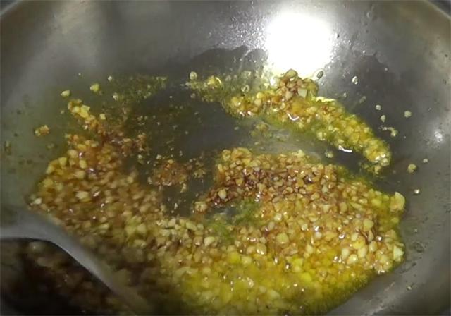 4.接着起锅加多一点的油,油热之后加入蒜末炒香,炒香后倒入最重要的素蚝油,加多一点炒匀,然后加少量的水,再加入少量的白糖炒匀,然后加入适量的盐、味精调味,再加少量的酱油翻炒均匀,蒜蓉就做好了。