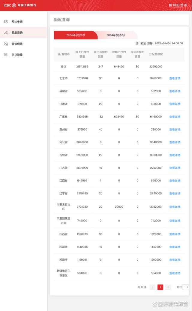 一、预约时间 根据公告,2024年龙年贺岁纪念币和纪念钞的预约时间为1月3日22时至1月4日24时。这个时间段非常短暂,因此大家一定要提前做好准备,确保在规定时间内完成预约。 二、预约方式1、线上预约 线上预约是当前最为便捷的预约方式。大家可以通过中国工商银行、中国农业银行、中国银行、中国建设银行、交通银行、中国邮政储蓄银行、华夏银行、浦发银行、平安银行、徽商银行、长沙银行以及陕西省农村信用社联合社等银行的官方网站或手机APP进行预约。 以中国工商银行为例,大家可以登录工商银行官方网站,点击“纪念币专区”,选择“2024龙年贺岁纪念币和纪念钞”,按照页面提示进行预约。或者在手机下载工商银行APP,登录后同样在“纪念币专区”进行预约。 2、线下预约(www.ws46.coM) 对于不熟悉线上预约操作的老年朋友或对线上操作有顾虑的朋友,可以选择线下预约。大家可以前往上述银行的营业网点进行预约。不过需要注意的是,线下预约可能需要排队等待,而且可能会遇到网点名额已满的情况。因此,建议大家尽量选择线上预约方式。 三、注意事项总之,2024龙年贺岁纪念币和纪念钞的预约是一项需要细心和耐心的工作。希望通过这篇文章,大家能够更加了解如何进行预约,顺利地获得自己心仪的纪念币和纪念钞。最后祝大家预约顺利,投资愉快! |