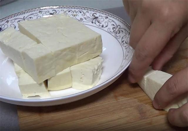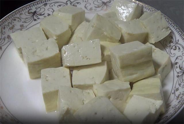 1.朋友们,大家好,今天我们来做一道非常好吃的菠萝咕咾豆腐,酸甜可口,开胃不腻,非常适合秋天食用。首先准备一块老豆腐,然后把它切成大小均等的块状,切好之后,装盘备用。