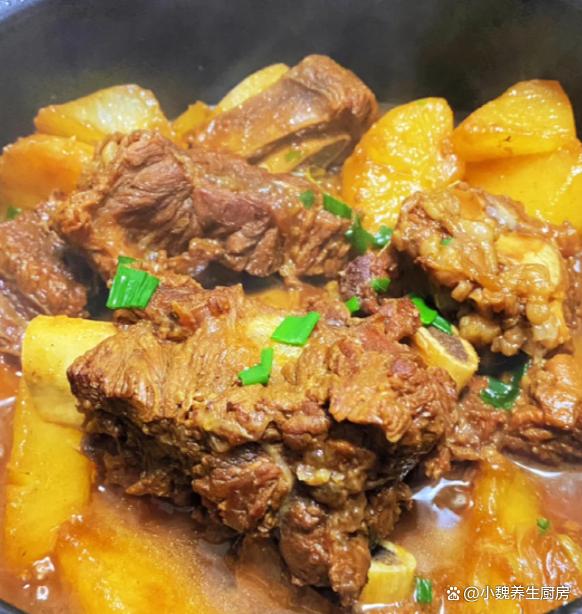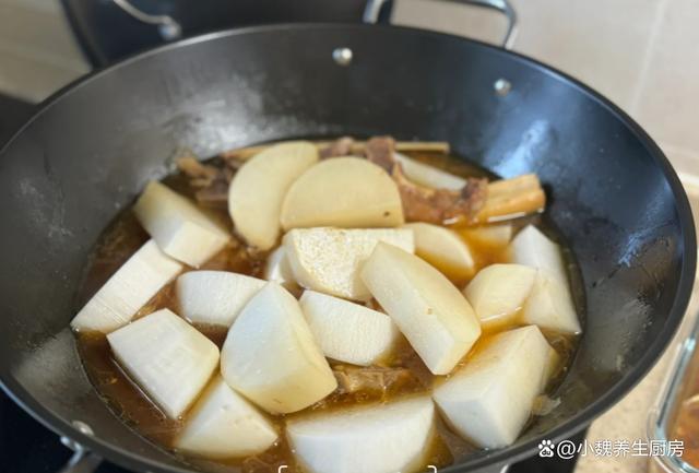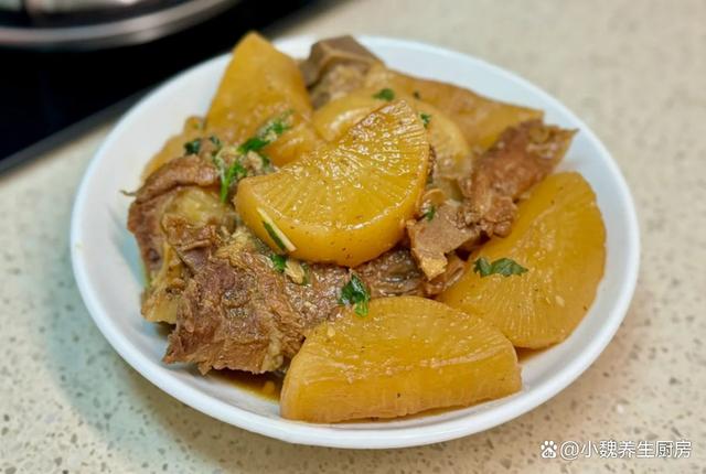进入深秋时节,到了10月下旬,已经到了秋季的最后日子,秋天是第三个季节,秋高气爽,天气非常阴沉,雨水会多一些,温度一直在急速下降,昼夜的温差越来越大,让人气虚体弱,浑身都不舒服。秋季是万物收获的时候,这个时候能量消耗特别快,需要抓住温补的时间,这样才能有强健的体魄,迎接冬天的来临。今天为网友们推荐一道温补的菜肴——白萝卜烧牛骨,白萝卜是刚刚上市的蔬菜,价格特别便宜,搭配牛骨煲一锅,吃起来非常解馋,学会给家里人做一做吧。入秋后,有钱没钱,平常要多吃这菜,补足营养,安稳度过秋季。