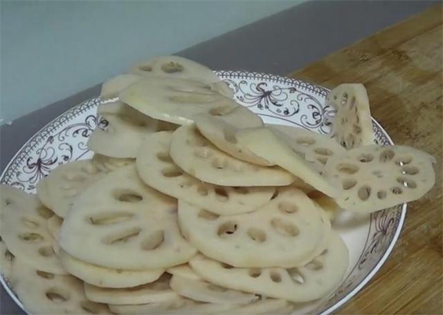 1.朋友们,大家好,今天我们来做一道非常好吃的凉拌藕片,藕片脆嫩,味道辣爽,非常的适合秋天吃。首先准备一个去皮洗净的藕,用刀切成薄一点的藕片,切好之后装盘。