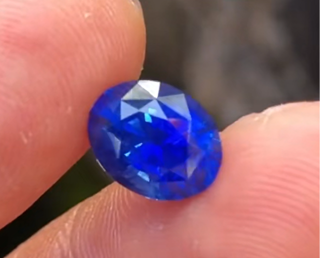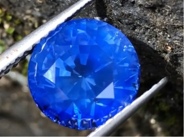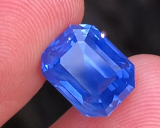 这颗是5卡多的浓郁无烧矢车菊,要在EGL拿到这个颜色评级是很难的,同样的有不张扬的火彩和浓郁的颜色。