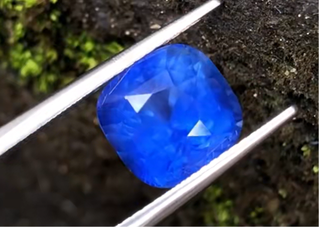严格意义上的丝绒感,既要兼具玻璃体的火彩,又要有天鹅绒般的质感,像这样品质的蓝宝石也是名贵的代名词,那丝绒感蓝宝石到底是怎样的,还是依照老规矩通过给大家来讲解,图片中这是一颗4卡的无烧矢车菊蓝宝石,机构给这颗的颜色评级是浓郁矢车菊,大家可以看到这颗既有不那么凌冽的火,也有一种天鹅绒般的质感。