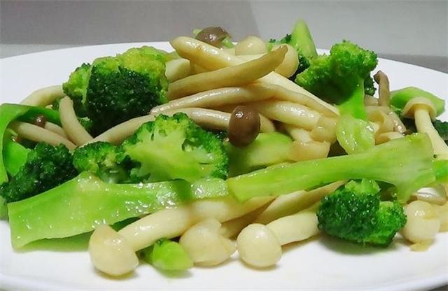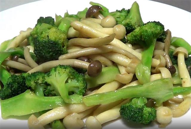 准备食材: 西兰花、白玉菇、蟹味菇、大蒜、食用油、盐、素蚝油 具体做法: