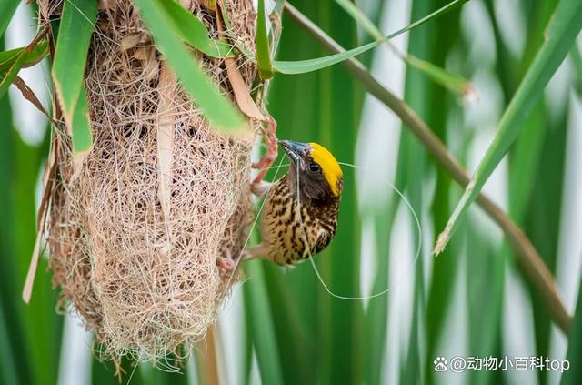 下垂筑巢鸟用柔软的材料(例如草或非常细的树枝)制成了 一个悬挂在树枝上的细长囊,以容纳它们的幼崽。织布鸟、金莺、太阳鸟和酋长鸟是常见的悬垂筑巢鸟。 |