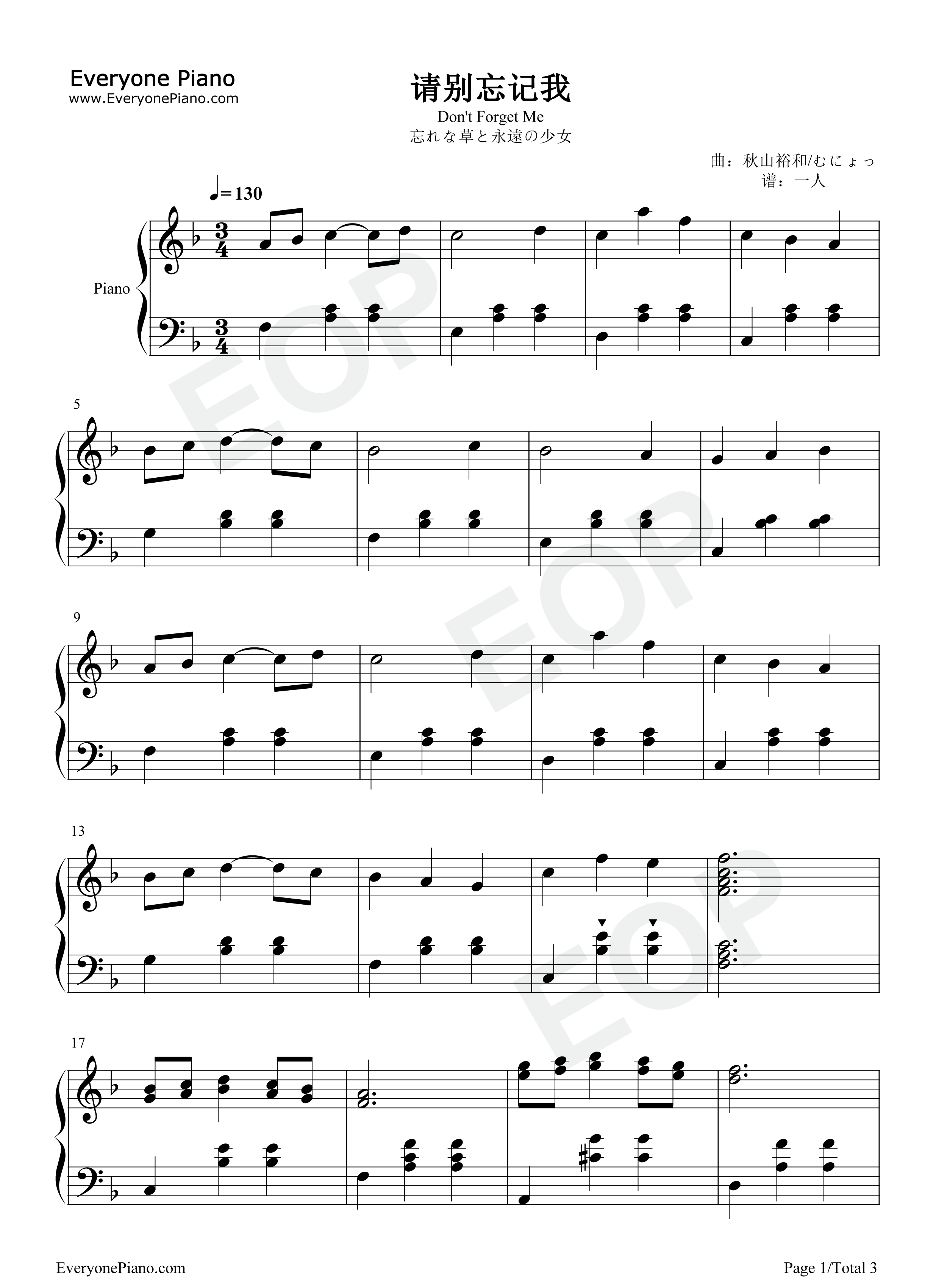 当前位置:首页>娱乐>请别忘记我钢琴谱-秋山裕和