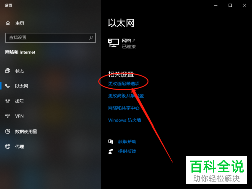2. 第二步在弹出的窗口中,根据下图箭头所指,点击【更改适配器选项】。