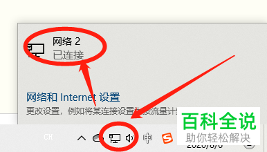 方法21. 首先第一步点击任务栏【网络】图标,在弹出的窗口中根据下图箭头所指,选择已连接的网络。