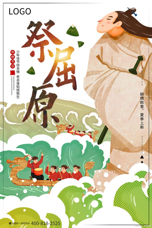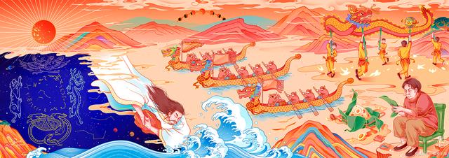 大约在公元前340年左右,春秋战国时期的楚国大夫屈原,因劝谏国君不听,被贬至汨罗江流放。据说在这一年的五月五日,屈原痛苦难忍,抱石投江而死。汨罗江的百姓为了纪念屈原,纷纷划龙舟赶往江中,将食物、糯米团、五色丝线扔进江里,为屈原祈愿,以避免鱼虾吃掉他的身体。