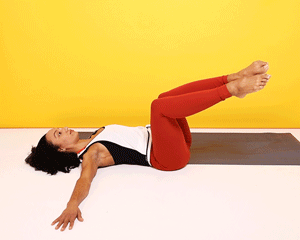 3. 仰卧屈膝扭转,躺在床上或垫子上,手臂打开,掌心朝上,两腿并拢,双腿屈腿抬起,大腿与地面呈90°,小腿与大腿的夹角呈90°,可以参考下图。
