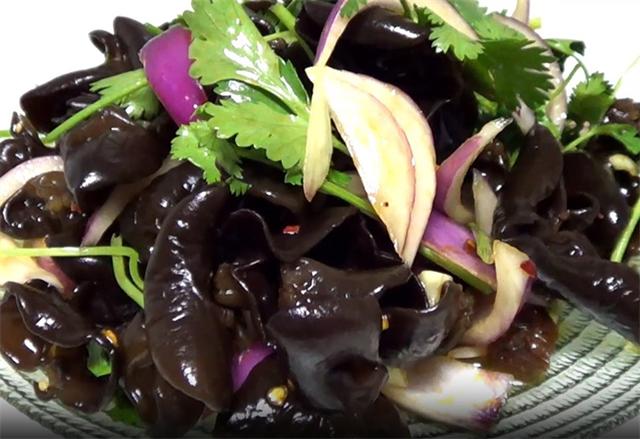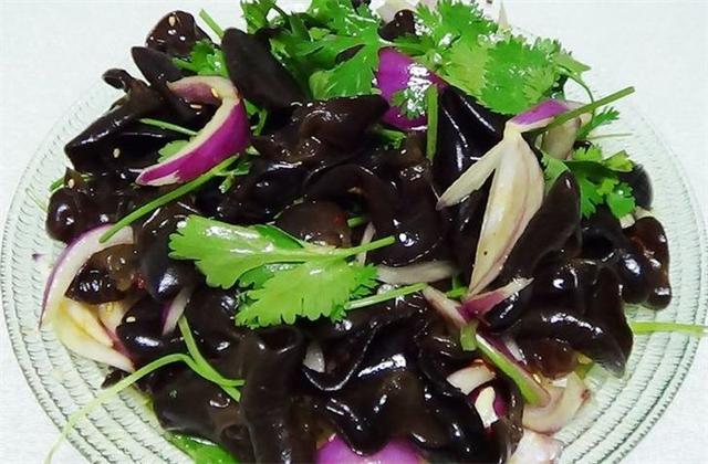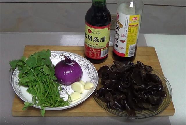准备食材: 木耳、香菜、大蒜、洋葱、酱油、陈醋、白糖、盐、辣椒油、辣根 具体做法: