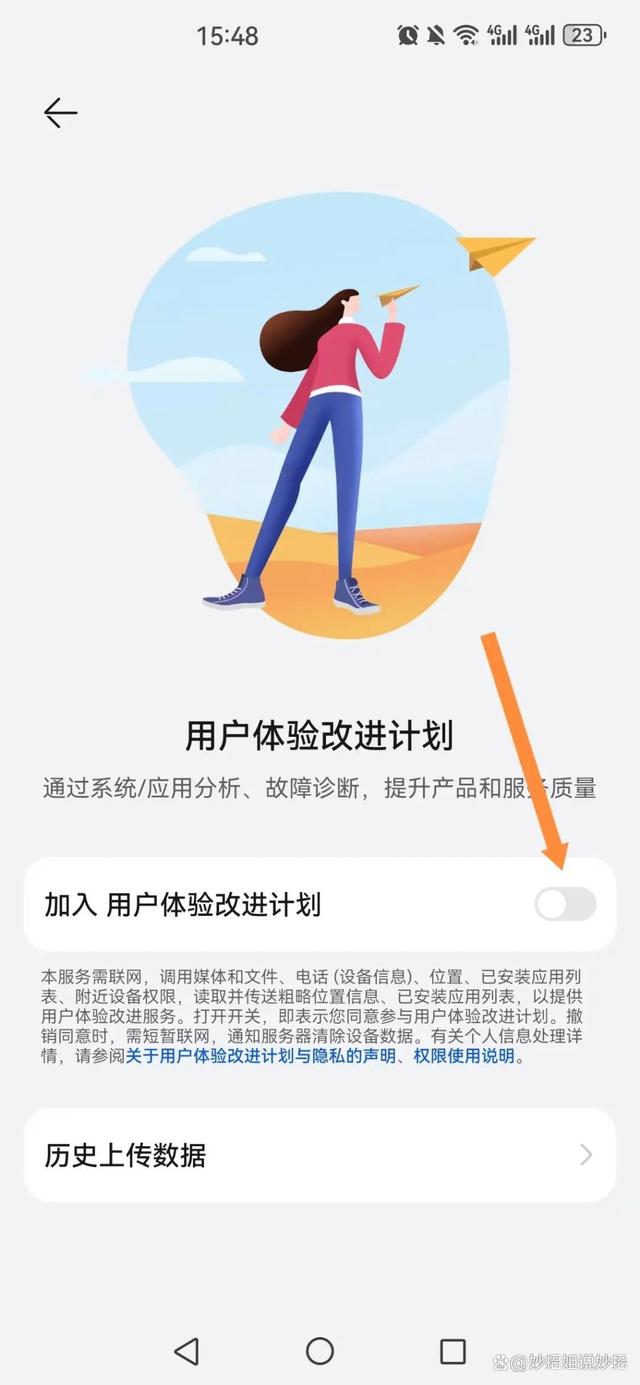 四、关闭用户体验计划 很多人可能都没有注意到这个设置,但它却可能在不知不觉中获取你的个人信息。在手机设置中找到 “系统和更新”,在这里可以看到 “用户体验计划”,其开关默认是开启的。 我们将这个开关关掉,因为这个功能对我们来说确实没有任何实际作用。它只是将我们的个人信息提供给厂家,以便厂家根据我们的体验计划来做一些改进。但在这个过程中,我们的隐私可能会受到一定程度的侵犯。