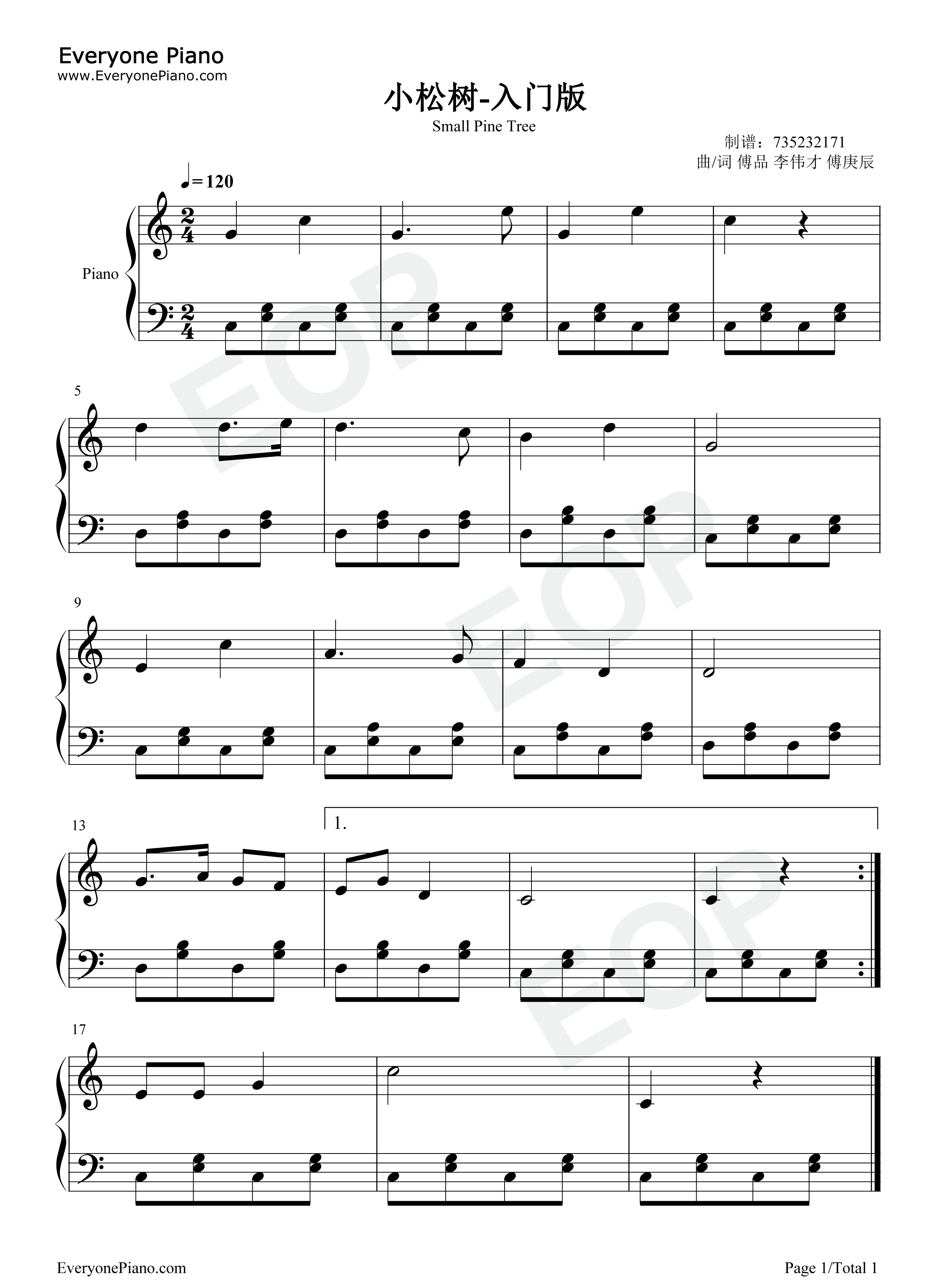 当前位置:首页>娱乐>小松树钢琴谱-傅晶 李伟才
