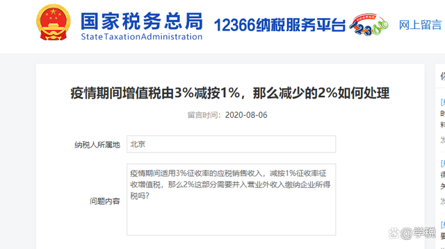 这个问题其实之前就有税务局对此进行回复了,大致意思就是:小规模纳税人减按1%征收增值税,纳税人在开票的时候是按1%换算不含税收入,按1%计算缴纳增值税的,2%的减免税实际已经包含在企业所得税应税收入之内了,2%的减免税不需要重复作为收入申报缴纳企业所得税。 其实这一点,我们看会计分录也可以发现,在主营收入中已经体现了2%的减免税。如果再将2%重新作为收入申报企业所得税,就等于重复纳税了。 最后,以上内容仅供参考和学习之用,不作为大家实际操作的依据。 |