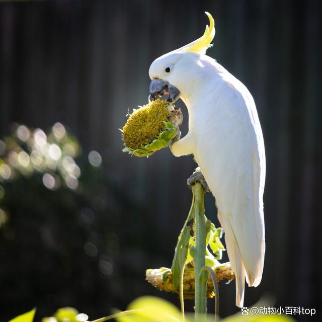 一项研究表明,秃鼻乌鸦是乌鸦家族中相对聪明的一种,它们展现出卓越的问题解决能力。来自剑桥大学和玛丽女王学院的研究显示,当面临任务需要解决问题时,秃鼻乌鸦总是能够选择正确的工具来解决难题。作为雀形目动物中体形较大的物种之一,秃鼻乌鸦拥有相当可观的脑容量。科学已经证明,大脑容量与智力水平呈正相关,而秃鼻乌鸦正是这一规律的典型例证。 4、葵花凤头鹦鹉