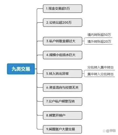 这里的个人账户,既包括个人银行卡,也包括微信、支付宝等。从税务局公开发布的一些相关税案来看,针对个人账户收款被查的事项,描述也都是:公司通过个人账户收取收入但没有计入公司账簿。 这里有三层含义: 第一,公司频繁的利用个人账户进行收款,容易被税务局重点关注,甚至引来稽查,给企业增加涉税风险; 第二,一旦被税务局查实企业是在利用个人账户收款的方式,进行隐匿收入和偷逃税款,那么补税、罚款和滞纳金一个也少不了; 第三,在某些条件下,企业用个人账户收款,然后按规定做账、报税,并留存充分的证明材料,并不会有任何问题,但是我们不建议这样做,毕竟因此引来税务局的稽查,然后再查出一些涉税违法的事情,真的会得不偿失。 另外,除非特定的条件下,不然税务局并没有权利核查个人账户的。但是税务局和银行之间有信息共享机制,并且银行对于大额交易和可疑交易都有一套完善的监管和监控机制。 也就是我们常说的:个人账户进账、提现或转账超过一定的数值,会被银行重点关注,同时不排除有些会同步推送到税务系统。 根据金融机构大额交易和可疑交易报告管理办法等规定,一般现金交易超过5万,个人账户境内转账超过50万等都会被重点监控。对于企业和个人而言,需要格外注意以下这9种行为: