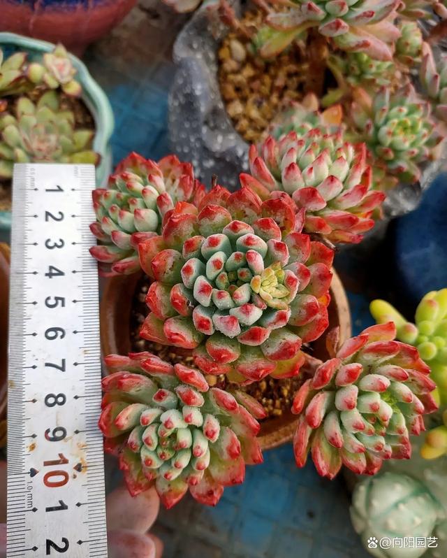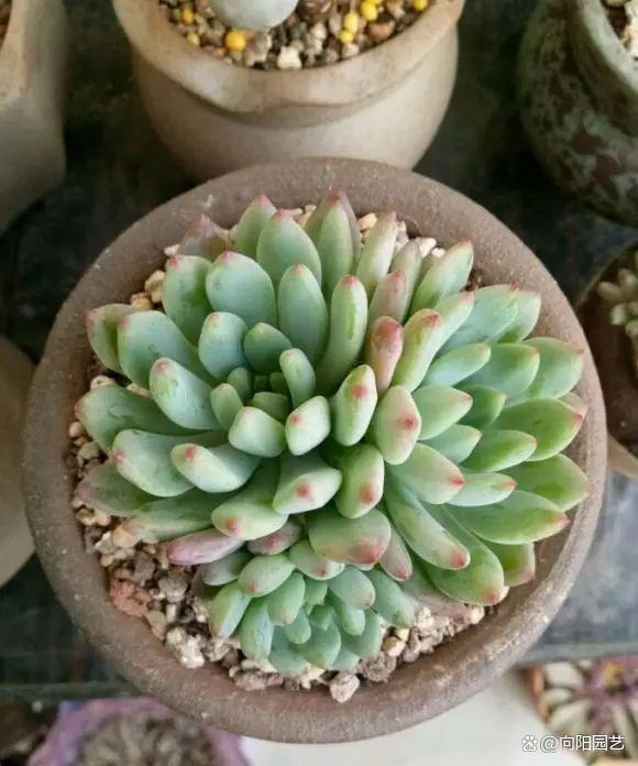 普普通通的“蓝苹果”,秋天一到,也能变红,状态很是漂亮! “蓝苹果”是一种多肉的名字,前些年在市面上也是非常火爆的多肉种类,可能也有很多的多肉花友都买过,蓝苹果这个品种价格非常便宜,两三块钱就可以买到,通常盆栽的蓝苹果都是多头售卖,因为这个品种是很容易长侧芽的。