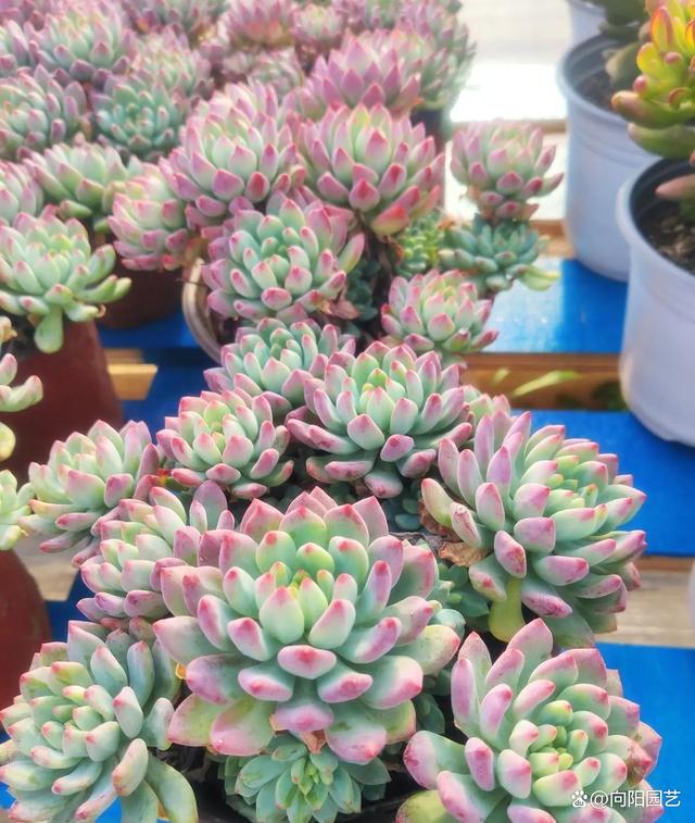 要想在较短的时间里体验到多肉长爆盆的感觉,买一盆蓝苹果,大概两年的时间就可以体验到了,只要根系可以正常的吸收土壤中的养分和水分了,那么到了第2年,基本上就可以长出很多的侧芽了,有些多肉种类在长侧芽这方面上是非常特殊的,并且速度上也是非常快的。