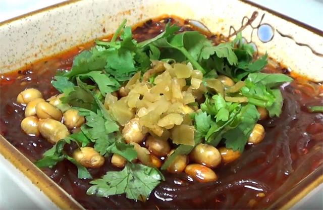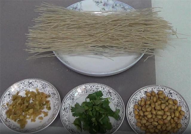准备食材: 红薯粉条、榨菜碎、香菜、酥黄豆、白糖、酱油、香醋、陈醋、盐、胡椒粉、辣椒油、香油 具体做法: