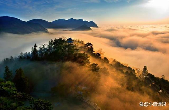 因此苏轼提笔赞道:“横看成岭侧成峰,远近高低各不同。”这两句大意是说:横向看过去,庐山是层层叠叠的山岭;从侧面端详,庐山又是由一座座相连的奇峰组成的。 因为游人所处位置、观景角度的不同,景色的形象、气势、风貌迥然各异,所以庐山会给人带来不同的视觉体验,也会使人产生不同的观景感受。 从这两句不难看出,因为角度不同,游人有时看到的是庐山连绵起伏的山岭,有时看到的是庐山高耸入云端的山峰。这两句概括而形象地写出了诗人移形换步时映入眼帘的一幅幅动态和静态的画面——千姿万态、绮丽无比的庐山风景。