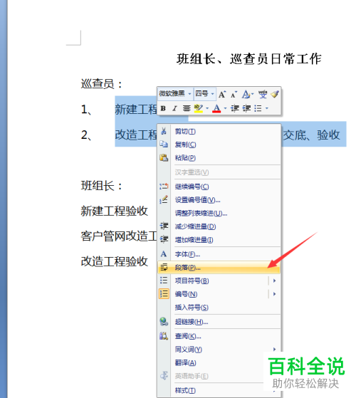 4.第四步,点击编号类型后,就可以为段落添加编号,如下图,我们需要双击左缩进图标或者右键点击然后选中弹出菜单中的段落选项。