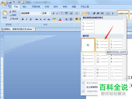 3. 第三步,在弹出的选项卡中选中一个自己想要的编号类型。