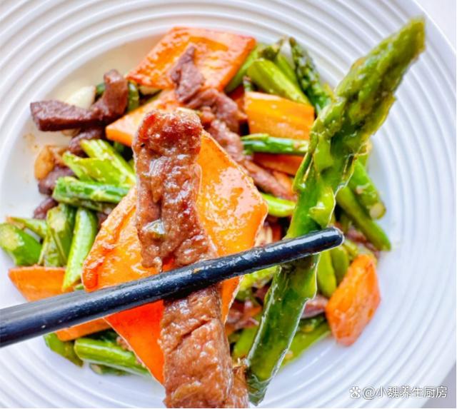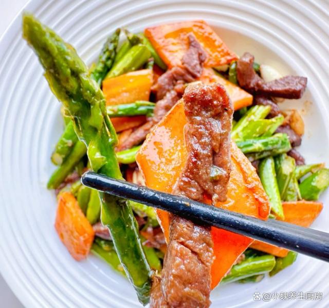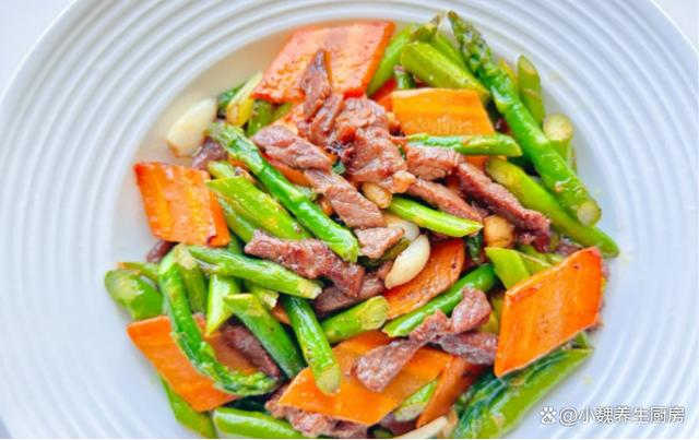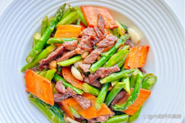 时间过得如此之快,到了十月中旬之后,天气有很大的改变,早晚的温差很大,人的身体非常疲惫,总是觉得没有胃口,吃啥都觉得没有食欲。深秋到了以后,很多蔬菜都吃腻了,今天准备尝试一些新菜肴——芦笋胡萝卜炒牛肉片,选用一小把新鲜的芦笋,胡萝卜和牛肉,三种食材搭配一起吃,荤素搭配,营养价值出色,内行人经常吃它。许多人没有吃过这道芦笋胡萝卜炒牛肉片,到底要如何来制作呢?快一点跟着小编学一学哦。10月,无论有钱没钱,常给家人吃这菜,营养全面,别太节俭了。