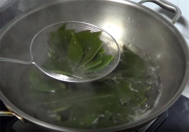 3.然后起锅烧水,水开后下入海带,再次煮开之后,等一分钟就可以捞出了,捞出之后,再冲洗一下。