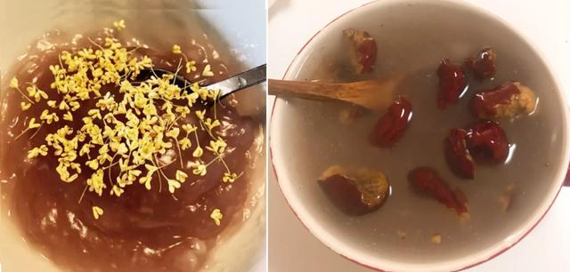 最爱拈起桂花,撒到热气腾腾藕粉上的那一刻,瞬间有如满陇桂雨?,加入大枣也很好 |