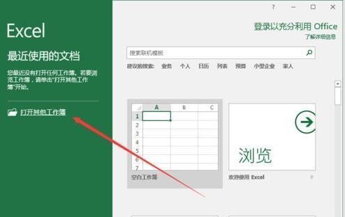 1、鼠标左键双击计算机桌面Excel2016程序图标,将其打开运行。在打开的Excel2016程序窗口,点击“打开其他工作簿”选项,打开需要进行编辑的Excel工作表。如图所示;