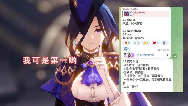 原神:克洛琳德机制曝光,无敌帧 高伤害,枫丹最后的人权卡? 最近克洛琳德的消息是越来越多了,作为版本末期出现的角色 已经有人将其机制曝了出来,虽然只是简单介绍了一下。