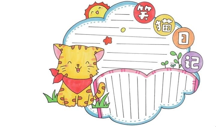 5、在边框中画上横线,写上文字,漂亮的笑猫日记读书卡就完成了。