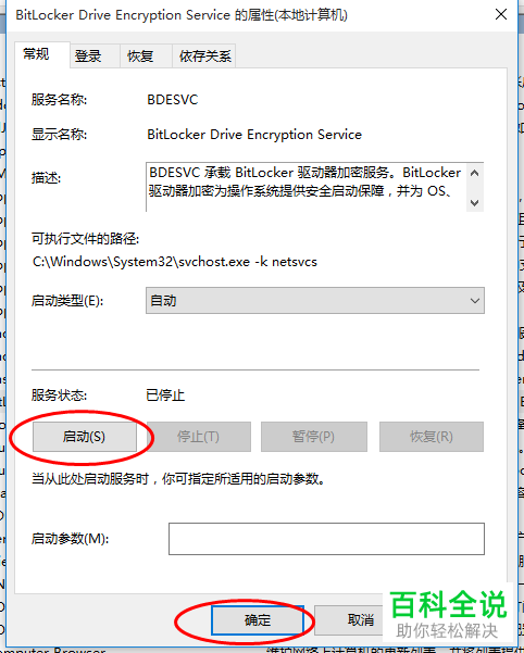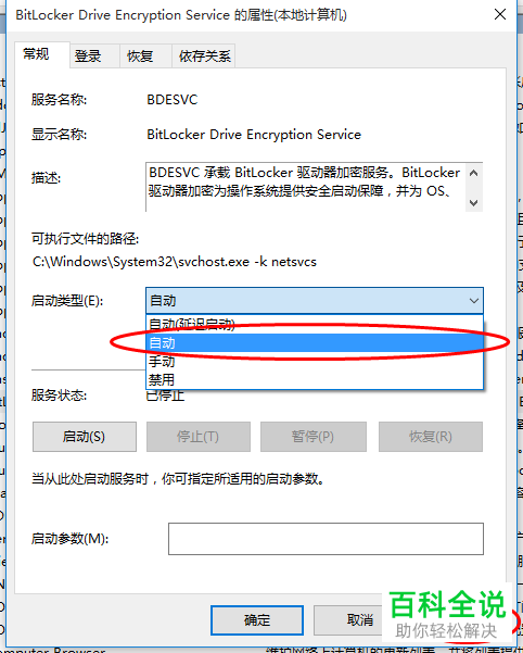5. 然后在弹出的窗口中,将启动类型设置为"自动“然后点击右下角的”应用“,然后点击服务状态下的“启动”按钮,启动完成后,点击确定。