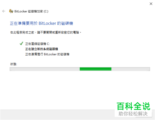 21. 如图,显示正在加密,等待进度条达到100%后,点击完成即可。