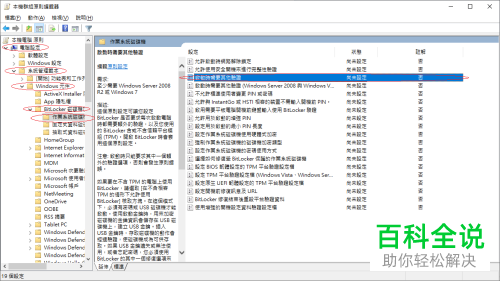 11. 在弹出的窗口中,依次点击左侧的“電腦設定---系統管理範本---Windows 元件---BitLocker磁碟機加密---作業系統磁碟機”选项,找到右侧的“啟動時需要其他驗證”选项,双击打开