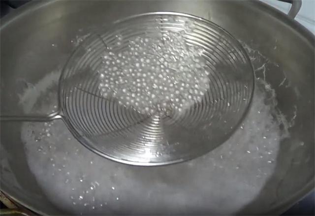 8.然后再把西米放入锅中煮熟,西米煮的时间要久一些,西米煮到这样的时候关火,再焖十分钟就可以了。