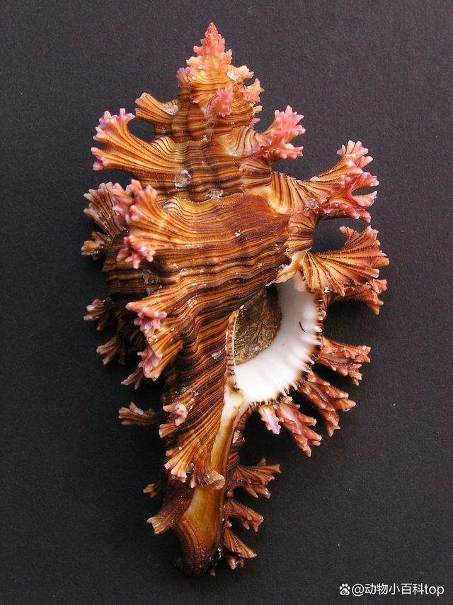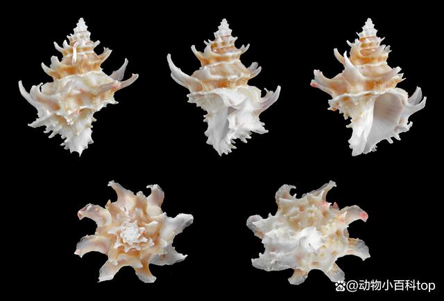 维纳斯骨螺,又称栉棘骨螺,外形美丽迷人、娇柔多姿,拥有纤细秀美的贝壳,长度可长达12公分,整体呈现雪白色调。通过海洋中长期的进化,形成了其独特的外貌,水管变得异常细长,而贝壳上布满了骨刺状的突起,宛如梳子齿般排列,这种大自然的雕刻艺术深受收藏家青睐。根据希腊神话,爱神维纳斯常使用骨螺梳理她的秀发,因此得名维纳斯骨螺。 6、玫瑰千手螺