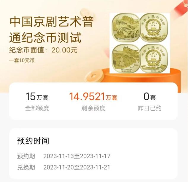 因此,它已经成为今年最火热的纪念币,在还没发行的时候,已经有不少京剧币提前成交,超过8块。 甚至有部分币商反馈,它有破9的迹象。 马上开约根据公告信息,京剧币马上就要开始预约了。 它们的具体安排如下。