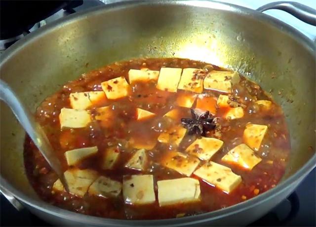 准备食材: 老豆腐、姜蒜末、辣椒粉、郫县豆瓣酱、花椒、八角、水淀粉、白糖、酱油、盐、味精、十三香、清水、食用油、葱花 具体做法: