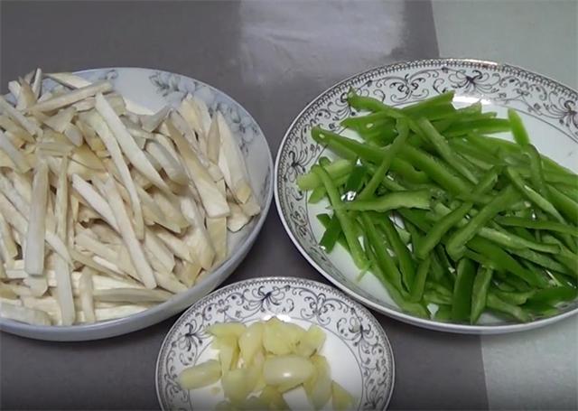1.朋友们,大家好,今天我们来做一道快手菜,青椒炒杏鲍菇,制作简单快捷,清淡好吃,非常棒。首先准备一盘切好的青椒丝,一盘杏鲍菇丝,然后再准备少量的大蒜。