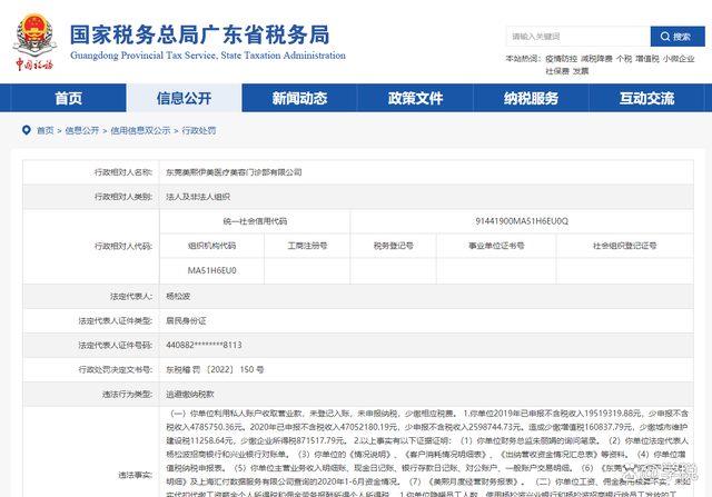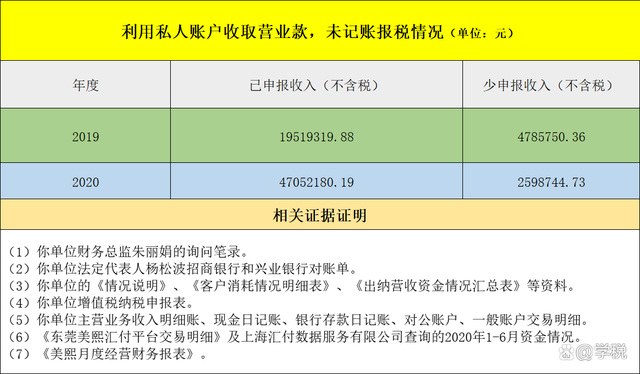 据东税稽罚〔2022〕150 号,东莞某医美公司,由于前来消费的以个人为主,很多人都没有索要发票的习惯。所以该公司在这上面动起了歪心思:将部分营业款用私人账户收取,并且不进行记账和报税。 很快,公司的这种行为被税务局发现了异常,并对该公司展开了相关调查。经税务局检查发现,该公司通过私户收款少申报收入的情况,如下表所示: