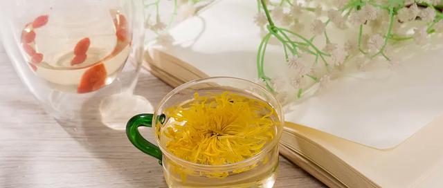 沸水冲泡后,等水不太热时,先用蒸汽熏一熏眼睛,给眼睛做个spa,能更好的缓解眼睛的不适。 皮肤死肌,清肺疏风。恶风湿痹。驱风散湿。久服,利血气,轻身、耐老延年。 皮肤暗黄、色素沉着,色斑,瘙痒,或阴亏津枯致的皮肤皲裂、面色无华、肤色枯槁也可以用下面这个方法。 白果50g,菊花4朵,雪梨4个,牛奶150~200ml,蜂蜜适量。 白果去壳,开水烫去皮衣。菊花洗净摘取花瓣。雪梨去芯切成粒状。 再加入菊花、牛奶,稍滚后熄火,降温后调入适量蜂蜜。(此量可供2~3人食用,宜每周饮用3~4次) 用菊花搭配温中的姜,疏肝的佛手,玫瑰花,补肾的肉桂和覆盆子一起泡水喝。 每天早晨冲泡一杯,开启美好新一天!