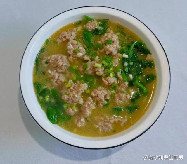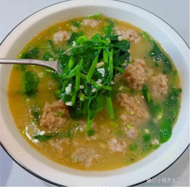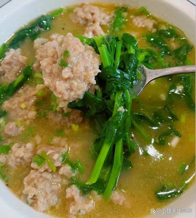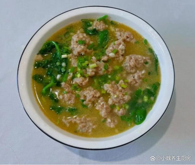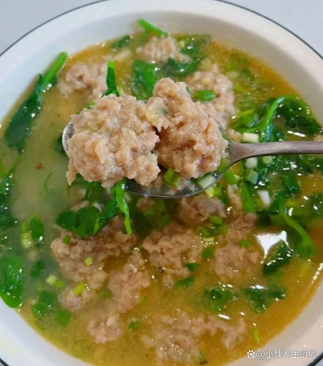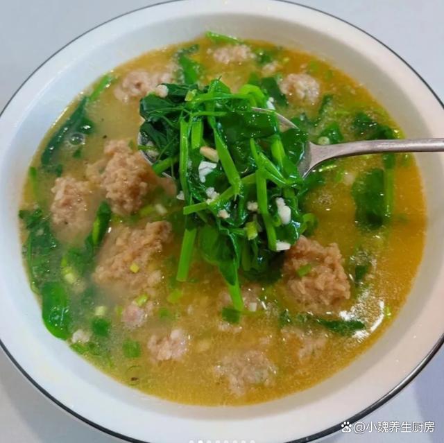 一晃眼就到了10月中旬,寒冷的秋季来临了,天气开始变冷了,温度一直在降低,身体会越来越差,胃口很差,孩子也抱怨食欲差。到了10月以后,总是忙于工作,没有时间给家里人做饭吃,周末一家人都在家,可以做一大桌丰盛的菜肴,荤素搭配,有肉有鱼,还给孩子准备一款补钙汤——豌豆尖瘦肉丸子汤,做法特别简单,汤品特鲜美,别不懂吃。10月,无论多忙,这汤要岔着喝!汤品鲜美,补足营养,舒服度秋。  【豌豆尖瘦肉丸子汤的制作技巧】 准备一些食材:选购一小把新鲜的豌豆尖(豌豆尖是刚刚上市的时令蔬菜,又叫豌豆苗,是一种非常低脂低卡的蔬菜,富含草酸,维生素和钙质,可以凉拌,清炒或煮汤,充分保留蔬菜的营养价值),若干个大蒜头,几片生姜,香葱几根,冷水和开水少许,新鲜猪肉里脊300克左右(主要用来制作肉丸子,口感更加鲜嫩,不会吃起来感觉腻),少许料酒,食盐和鸡精少许,少许玉米淀粉,胡椒粉半勺,一个鸡蛋清,原味酱油一勺,其他。 正确制作步骤: 1:提前选购好新鲜里脊肉,豌豆尖和其他食材,将几片生姜切成细末,香葱切成细葱花,大蒜剥皮切成细末,备用。2:把豌豆尖的顶部去掉,掐掉根部的老茎,去掉发黄的叶片,反复清洗干净,切成两半,用盐水浸泡洗净,控干表面水分。3:将猪肉里脊彻底洗干净,切成一些小块,用刀剁碎成细末,或者放在料理机打碎,猪肉馅要有一些颗粒感,做出来的肉丸更好吃。4:猪肉馅放在器皿,加上一些姜末,一勺原味生抽,加上一个鸡蛋清,加上少许玉米淀粉,加上食盐和胡椒粉半勺,将猪肉馅用手顺时针搅拌,让肉馅调配均匀,腌制一小会儿。 (www.ws46.com) 5:锅底提前烧热乎,加上食用油或猪油,加上蒜末和姜末,用锅铲快速煸炒,加上适量清水和开水,将其大火煮至沸腾,然后转小火焖煮。 6:然后把肉馅搓成肉丸子,全部下入锅中,等到全部浮上来,证明猪肉丸子都煮熟了。 7:最后下入豌豆尖,将蔬菜烫熟,加上少许食盐和胡椒粉,焖煮一小会儿,出锅开吃,这道豌豆尖瘦肉丸子汤就烹饪完成了。 豌豆尖瘦肉丸子汤的制作小贴士:首先,关于瘦肉丸子的制作,记得在搅拌肉馅时,除了基本的调味料外,加入少许蛋清和清水,顺着一个方向用力搅打,直到肉馅上劲,这样做出的丸子口感会更加Q弹,不易散开。同时,为了避免丸子在煮的过程中变柴,火候的控制尤为重要,应先用中火让水温慢慢升高,待丸子定型后再转至小火慢炖,这样既能保证丸子内部熟透,又能保持其嫩滑。 其次,豌豆尖的加入时机也很关键。豌豆尖鲜嫩易熟,过早放入会使其过于软烂,失去脆嫩的口感。建议在汤品即将出锅前的最后几分钟加入,轻轻翻动几下,待其颜色变得更加鲜绿,便可关火。这样,豌豆尖的清甜与汤汁的醇厚完美融合,为整道汤品增添了一抹清新的风味。最后,别忘了在出锅前撒上一把葱花和少许胡椒粉,葱花的香气能瞬间提升汤品的层次感,而胡椒粉则能驱寒暖身,为这道汤品增添一丝温暖的滋味。 豌豆尖瘦肉丸子汤是一款老少皆宜的汤品,尤其是我们家孩子爱吃,肉丸子一口一个,总共花费不到15块钱,汤品非常鲜美,肉丸子特别鲜嫩Q弹,为身体储备各种能力,舒服度过秋季。 各位网友们,你们是否喝过这款豌豆尖瘦肉丸子汤呢?(文中的配图均出自网络)