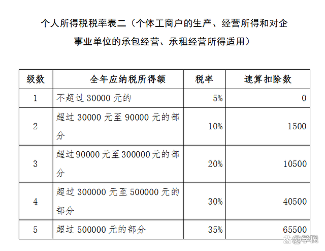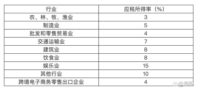 核定征收所得率,则一般需要个体户能够核算清楚收入,然后税务局给一个核定所得率,计算出应纳税所得额,再根据税率表计算个税。这个应税所得率,各地不同,具体以当地公布的为准。下图就是某个地方的应税所得率: